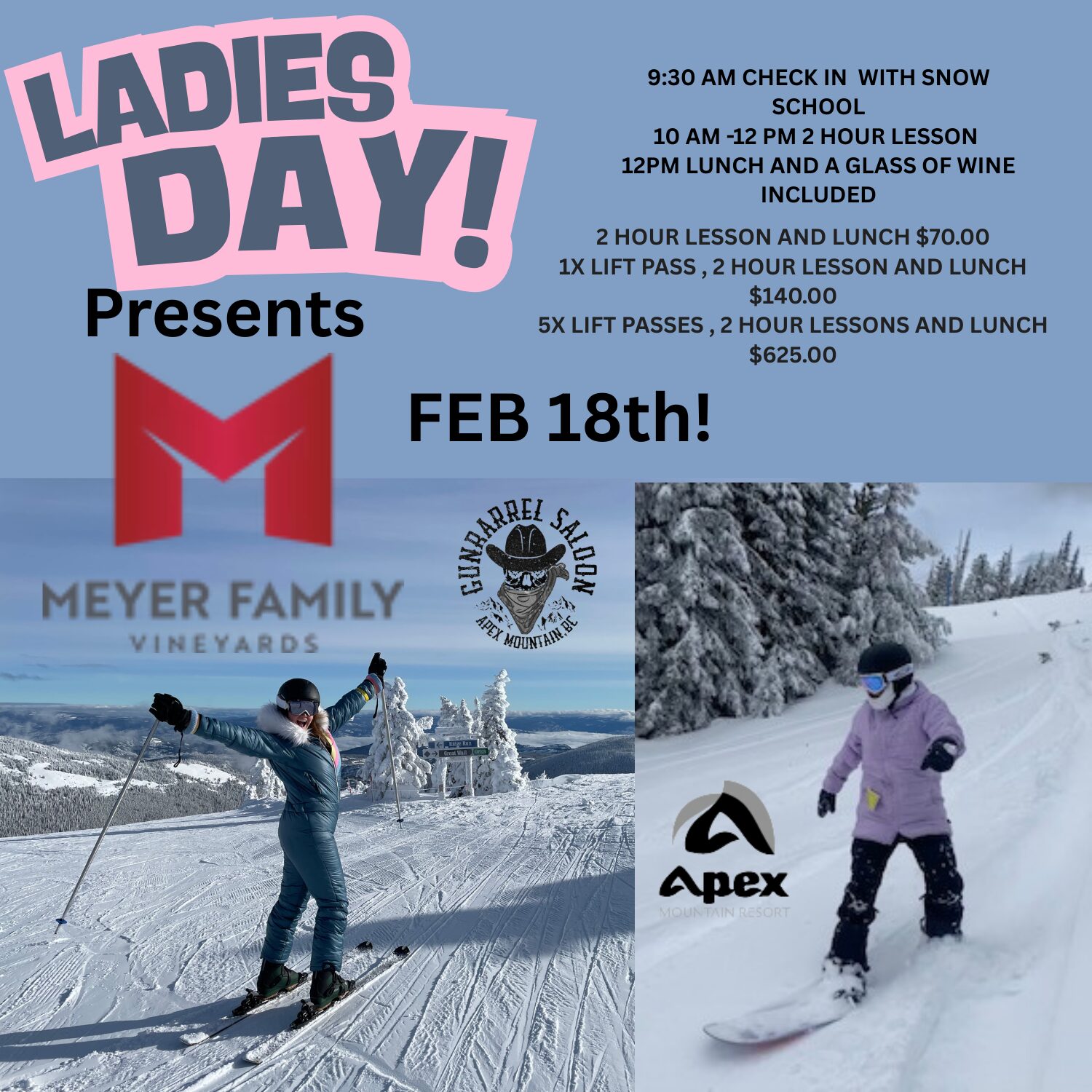 Come enjoy a fun day on the hill and meet some great Ladies.